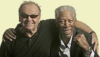 Meeting two cinema icons like Jack Nicholson and Morgan Freeman isn't something for the fainthearted. It's not because of the men themselves, but because of the press insanity surrounding them. The press junket in London for The Bucket List features a billboard-sized movie-poster backdrop and a chat-show style set with armchairs, small tables and potted plants. Although even this is rather bland for the grandeur of the room at Claridges.But the most distinctive element is the mood of the room: expectation. The usual journalistic rustling feels a bit hushed, especially as they announce the arrival of our special guests. In stride Rob Reiner, Morgan Freeman and Jack Nicholson, all looking like the wealthy, successful stars that they are. Reiner seems to be enjoying the fact that he's not the centre of attention. Freeman is uber-relaxed in crisp jeans and a blazer. Nicholson is grinning in a salmon polo shirt, wearing big sunglasses and immediately lighting up a cigarette, even though he clearly knows Britain has a no indoor smoking law. No one says a word. It's the day after Heath Ledger died, and the topic is raised instantly. After all, Nicholson is the previous incarnation of the Joker, and Freeman costars in The Black Knight, although they had no scenes together. None of the three men had met Ledger, but all had personal connections with his tragic death. Reiner remembers working with River Phoenix on Stand By Me; Freeman clearly has admired Ledger's work over the years; Nicholson offers a cautionary story about his own experiences with sleeping tablets, and how he warns anyone who will listen about the dangers. The mood is sober, so even though we're here to talk about a comedy, we begin talking about the film's depiction of grief, and specifically the scene in which Nicholson bursts into tears. "All I did was just let it take off on me," he says. "I was just standing there looking at the pictures on the dais, and the tears came. I liked the film's poles - from being slapstick to doing the eulogy." "To see him as vulnerable as he was is a testament to how talented he is," interjects Reiner. "He's an artist!" When a Finnish journalist in the front row asks a question, Nicholson can't find her in the bright lights and is clearly distracted looking for her. "Were you asking me?" he asks deadpan when he finds her. "What was the question again?" It's about what they would put on their own bucket lists, and Freeman answers first. "I've just recently taken up golf, so most of the things on my list would have to do with golf," he says. "And I am quite enamoured with my business jet. And if I was going to say who I would like to have met, I'd have to say Diana." Nicholson chimes in: "It would be exactly the same for me, except that I did meet Princess Diana - a charming woman," he smiles knowingly. "I always wanted to see my children graduate, to speak another language, learn to cook." To illustrate his cooking prowess, he tells a story about working as a short-order cook in New Jersey, when he served two pancakes to a customer, who complained that they were too thick. "I told her to make her own god-damn pancakes!" he laughs. And Reiner takes the publicity line: "I always wanted to work with these two actors together - the two best in the world. They come prepared to play - nothing threatens them. It's like a dream come true." The conversation stays rather serious, as they begin talking about where we can touch happiness in life. "Finding joy is tantamount to finding yourself," Freeman says. "It's about being comfortable in your own skin. And that's like, well, ice cream!" Reiner laughs: "Morgan is like a Zen master. I've never met anyone more comfortable in is own skin! For me, I'd say happiness is with my wife and children. There's no feeling of love more powerful than that. Everyone is born with the knowledge that they're going to die, and what we have to do is find the joy." Nicholson has zoned out again. "What was the question again?" he says mischievously. "There's some joy to be found every day," he adds. "I took particular joy the other day in the faces of all the pundits who said Hillary Clinton's campaign was dead in the water after the first primary! And I took joy in watching my daughter in a play recently." He goes on to talk about a recent golf game that found him lying in a sand trap throwing a tantrum. So of course the conversation drifts to aging. "Your priorities change whether it's because of your character or because of a loss of facility," Nicholson says wryly. And does it get hard to find good roles as you get older? "Literature is kind of limited for characters over 50, and I never want to get trapped in a kind of role," he says. "I also never want to repeat a success, because if you do the same thing three times, you're trapped in that kind of role. So I tend to play characters who are older than me, rather than younger. I always look for a vacuum to fill, to break the conventional wisdom, to bring sexuality into middle age! As opposed to the Father Knows Best kind of movie, where they have all those kids but they somehow never seem to take their pants off." He continues: "But that's the only area of conscious shaping I've done in my career. In The Departed I wanted to bring sexuality to the role, and I might have overdone it. But I don't think so. " Meanwhile, Freeman is sinking into a Zen-like trance. So someone asks him if it's true that doing comedy is more difficult than drama. He calmly turns his head and says, deadpan, "I don't do comedy." Once the roar of laughter settles (Freeman hasn't flinched), the conversation turns to whether there was a temptation to try to steal scenes from each other. "You can't work against another actor," Freeman says. "You have to fall back on them." "I always assume the other person is perfect in what they're doing," Nicholson adds. "The greatness of these two," says Reiner, "is that they understand that giving the best brings both